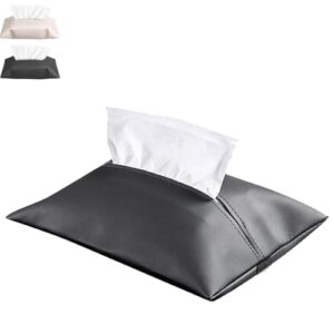 DZANNC 車用ティッシュケース/車載ティッシュホルダー/車内装飾ティッシュボックス/車用ティッシュボックス/ティッシュカバー/ベルトバックル固定 ヘッドレスト・サンバイザー対応 PUレザー 撥水 大容量 ブラック/ホワイト サイズ選択可 車内便利グッズ (ブラック, S)