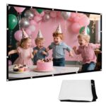 60~133インチ対応のプロジェクタースクリーン。16:9比率で3DフルHD・4K解像度に対応。軽量・折りたたみ可能で持ち運び便利。ビジネス会議や家庭・映画視聴に最適。
