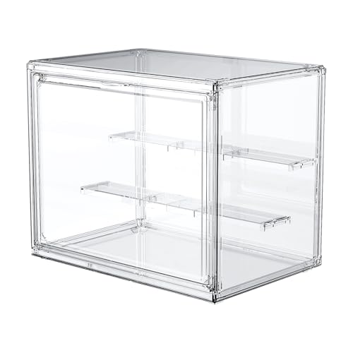 homiiのフィギュアケースは27*22*18cmで、仕切り板付きのアクリル製クリアケースです。マグネット式扉で防塵・汚れ防止効果があり、フィギュアのコレクションに最適です。