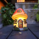 AnnaStoreのソーラー置物キノコハウスは、高さ16cm、幅11cmの可愛らしいデザイン。電池不要で、屋外の庭やアウトドアデコレーションに最適なソーラーライトです。