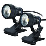 防水機能を備えたLEDクリップライト2個セット。昼光色6000K、9Wの小型スポットライトで屋外・屋内兼用。看板や水槽照明、作業用にも最適。防雨設計で延長コード3m付き。