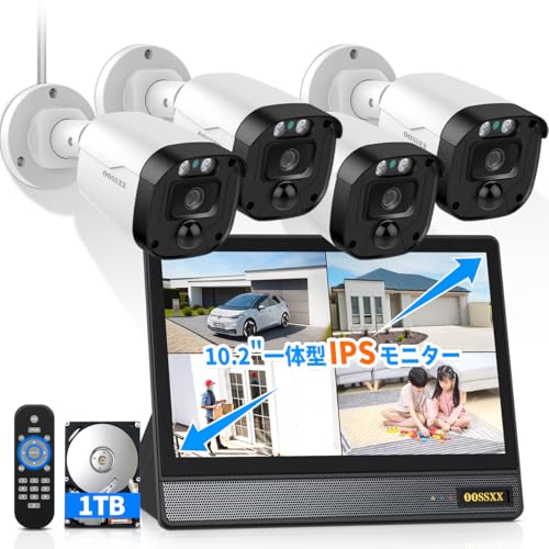 OOSSXXの500万画素・130°超広角の有線セキュリティカメラシステムは、屋内外で使用可能な4台セット。スマホ対応で、監視と録画が簡単に行えます。モニター付きで便利です。