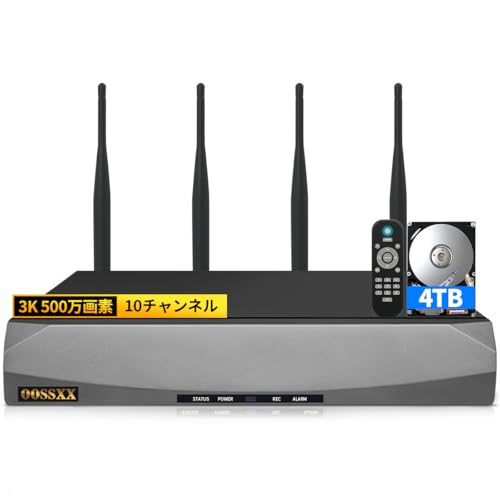 OOSSXX NVRレコーダーは、4K800万画素録画が可能で、最大16台のカメラ接続ができます。遠隔監視、日本語システム搭載、防犯対策に最適。4TBハードディスク内蔵、ワイヤレス対応。