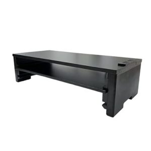 RunsweatデスクトップモニタースタンドUSB/Type-C充電機能付き耐荷重25kg木製データ転送ノートパソコン/iMac/プリンター対応オフィス/ホームオフィス対応コンセント内蔵省スペース設計 (黒)