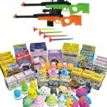おうちで縁日を楽しむ射的セット。50個の景品おもちゃと2個の吸盤トイが含まれ、射的ゲームや夏祭りの屋台ごっこに最適。子供会やイベントにぴったりのアイテムです。