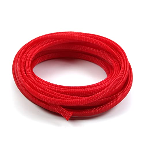 / Othmro 編組スリーブ 幅6mm 長さ10m 赤 1個入り 編組チューブ RoHS認証 PET ポリエチレンテレフタレート材質 ポリエステル編組スリーブ ケーブル被覆用