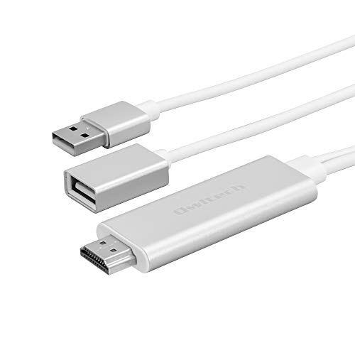 オウルテック HDMI変換ケーブルはLightning端子搭載で、iPhone/iPadの動画や写真をテレビにミラーリング可能。長さ1.0m、ホワイト色。簡単に接続できるのが特徴です。