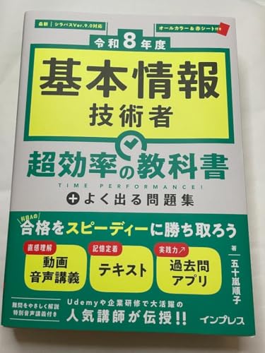 基本情報技術者 令和8年度 超効率の教科書+よく出る問題集は、効率的な学習を支援し、重要ポイントを押さえた内容が特徴です。過去問アプリも活用して、実践的な問題演習が可能です。