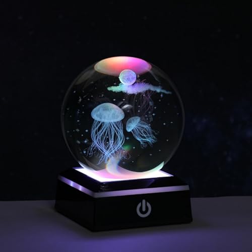 OXIZER クリスタルボール ギャラクシー 3D内雕 宇宙 天文学 カラフルなLEDベース付き 7段調光 ナイトライト 雰囲気照明 癒しグッズ おしゃれ 装飾品 女性、男性、子供、高齢者、友人、誕生日、記念日、新年、クリスマスに最適なギフトです (クラゲ,8cm) 高価買取中
