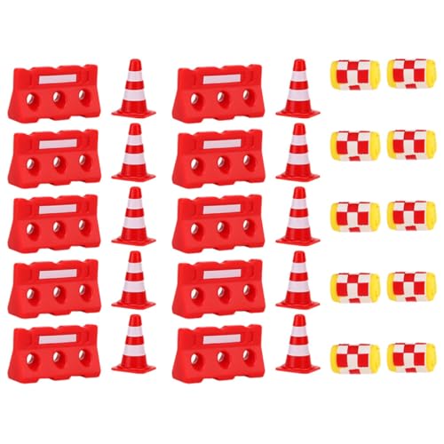 ノーブランドのミニチュア交通標識30個セットです。学習用の建設道路コーンやバリケードが含まれ、幼児教育に最適です。認知力向上に役立つ遊具として、安全に遊べます。