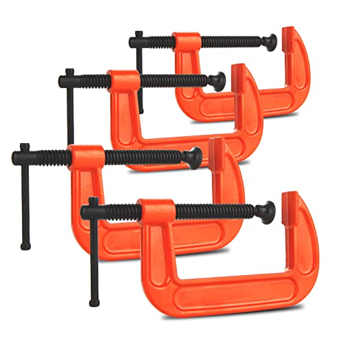 やぬき Cクランプ 4個セットは、100mmの大型鋼製・鋳鉄製で強力型。最大締付力約250kgの信頼性があり、DIYや木工、接着、固定、溶接作業に最適な工具です。