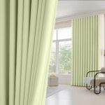 PANDA INTERIORの遮光カーテンは1級遮光で厚手、防音・断熱・防寒機能付き。UVプロテクションもあり、洗濯可能。淡い抹茶グリーン、幅80cm丈165cmの2枚組。リビングや寝室、カフェに最適。省エネ効果があるスタイリッシュなデザインです。