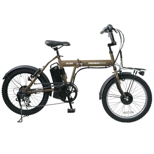 PROVROS PLADO P-M206Eproは、20インチの折りたたみ電動アシスト自転車。シマノ6段変速、リチウムイオンバッテリー搭載で、最大65km走行可能です。型式認定済みで公道でも使用可。カラーはサンドオリーブグリーン。