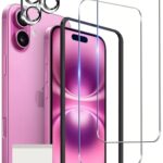 iPhone 16用のガラスフィルム(2枚)とカメラフィルム(2枚)セット。ガイド枠付きで簡単貼り付け。硬度9H、全面保護、耐衝撃、指紋防止、気泡なし。超鮮明な画質でスクラッチ防止、飛散防止機能あり。