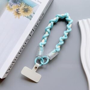 携帯電話ストラップ 取り外し可能な携帯電話ストラップ ハンドメイド 織ストラップ ハンドリストストラップ タブ付きストラップ(スカイブルーホワイト)