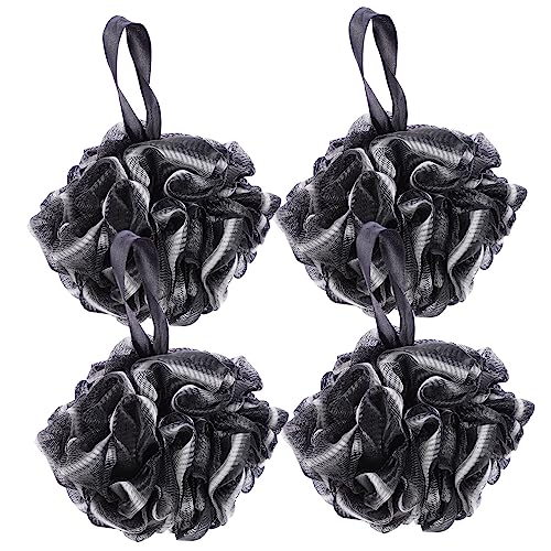 Healeved 黒シャワー用ヘチマボールはPE製のバススクラバーボールで、肌に優しい泡立てが特徴です。吊り下げロープ付きで、バスルームでの使用に最適。4個セットでボディケアに役立ちます。