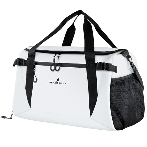 PYKES PEAKのボストンバッグは大容量30L/45Lで、シューズインポケット付き。ジムや旅行に最適なダッフルバッグで、S/Mサイズと6色展開。