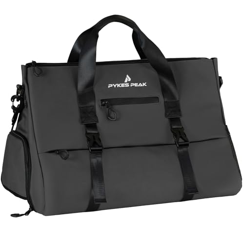 PYKES PEAKのスポーツショルダーバッグは、エナメル素材で作られた3WAY仕様の大容量23Lバッグです。ジム、ゴルフ、アウトドア、ランニング、旅行にも最適。グレーのMサイズ。