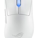 ASUS ROG Keris II Aceは54gの軽量設計で、ワイヤレス、最大8000Hzのポーリングレートを誇ります。左右非対称エルゴ形状、42K DPIオプティカルセンサーを搭載。107時間のバッテリー寿命と1億回のクリック寿命を実現。カラーはmoonlight white。