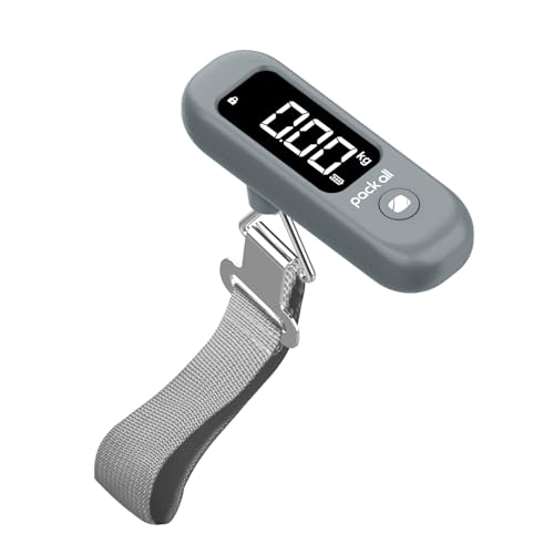 旅行に最適な携帯式デジタルスケール。最大50kgまで測定可能で、LCC航空会社の制限に対応。LCDスクリーンはバックライト付きで見やすく、風袋引き機能やバッテリーも搭載。軽量で便利なグレーのデザインです。
