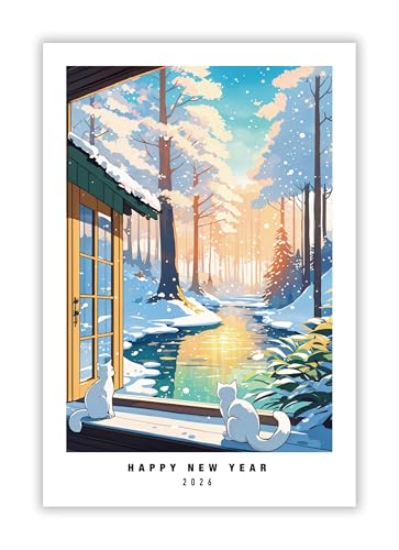 2026年用年賀状、フチなしデザインのハガキ10枚セット。高品質な印刷で、写真やイラストも美しく仕上がります。個性的なデザインを楽しみたい方に最適です。サイズ:100×148mm。
