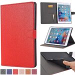 AiSMei Folioフリップスタンドケースは、9.7インチのiPad (A1822, A1823) 用のソフトTPUバックカバーです。レッドカラーでスマートカバー機能付き。