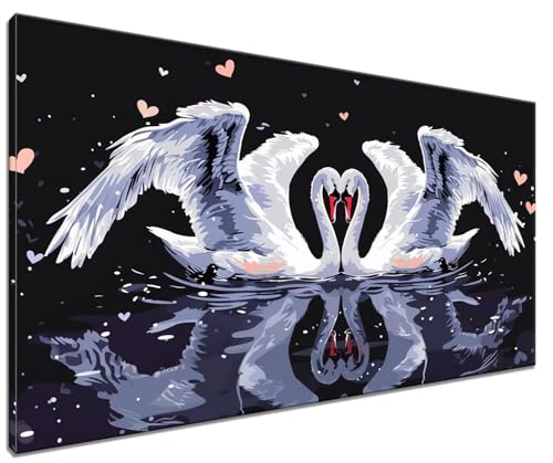 白鳥の数字油絵キットです。初心者や子供にも最適。アクリル水彩絵の具を使って簡単に塗れる。サイズは60x80cm(フレームレス)で、壁装飾にぴったり。