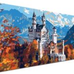 シュヴァンシュタイン城をテーマにした40x50cmの数字油絵キット。大人子ども皆で楽しめるDIYアート。フルドリルで手軽に美しいインテリアに。フレームレス、芸術手工芸ギフトにも最適。