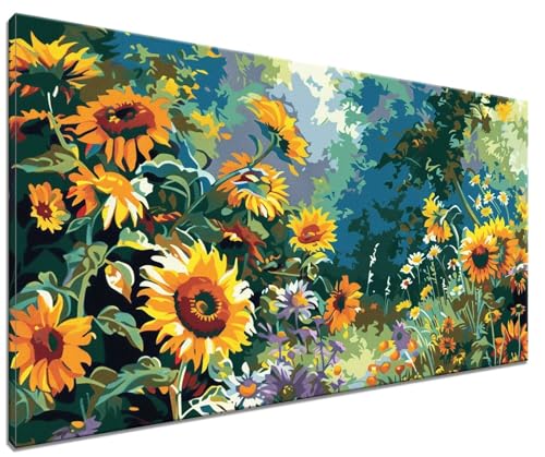 数字油絵キットで、ひまわりをテーマにしたアート作品をDIY。大人と子ども向け、手芸やインテリアに最適。フルドリルのダイヤモンドアートも楽しめます。(40x50cm,フレームレス)