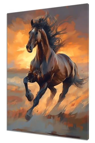 馬の数字油絵キット。初心者や子供でも簡単に楽しめるDIYペイント。日没の風景をアクリル水彩絵具で描ける。サイズ50x70cm(フレームレス)。