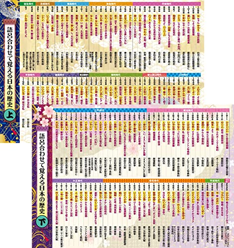 お風呂の学校が提供する日本史の年号を語呂合わせで覚えるポスター2枚セット。日本製の和柄デザインで、中学受験や知育に最適。防水加工済みでB3サイズ。