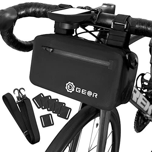 ギアトルのフロントバッグは、ペットボトル2本を収納可能な防水設計の自転車用バッグです。ロードバイクのハンドルに取り付けて、便利に使用できます。