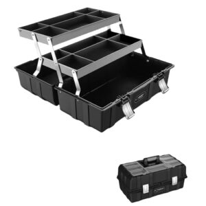 HLPLLXY ツールボックス ツール保管 多機能工具箱 ドライバー付き 工具箱 大容量 取っ手付 工具入れ 道具箱 車載 防災グッズ アウトドア 屋外メンテナンスボックス 小物収納ケース 強靭 高耐久 ポータブル(グリーンシルバ,-14インチ)の高価買取
