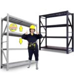 幅200cm、奥行50cm、高さ180cmのメタルスチールラックです。耐荷重は200kg/段で、4段の大容量収納が可能。キャスター付きで移動も簡単。業務用やガレージ、倉庫に最適なシェルフです。