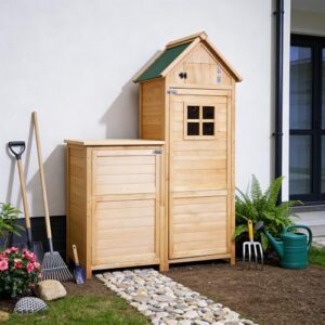 物置 屋外 木製 倉庫 小型 大型 防水 大容量 屋外収納ボックス スリム ベランダ 収納 物置き 天然木 庭 収納 収納庫 おしゃれ (高さ146)