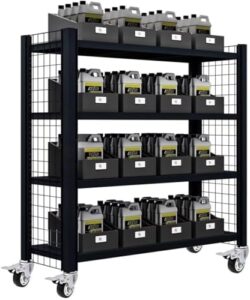Auyyhui スチールラック メタルラック 4段 キャスター付き 高さ調整可能 フェンス付き 棚 ラック 耐荷重200kg/段 高耐荷重収納棚 ステンレスラック 収納ラック スチール棚 家庭用 物置 業務用 倉庫用 ガレージ (ブラック,120×40×150)