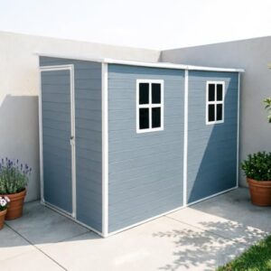 樹脂製 物置 屋外 大型 戸外収納庫 幅132*奥行き254*高187 床材補強フレーム付 引き戸両開きタイプ 換気口付き 防さび ベランダ 防水 ガーデニング 庭 グレー