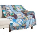 転生したらスライムだった件の大判ブランケット。サイズ100×125cm、高精細プリントのアニメ風イラスト。フランネル素材で抗菌、防ダニ仕様。洗濯可、軽量でふわふわ感があり、オールシーズン使えます。