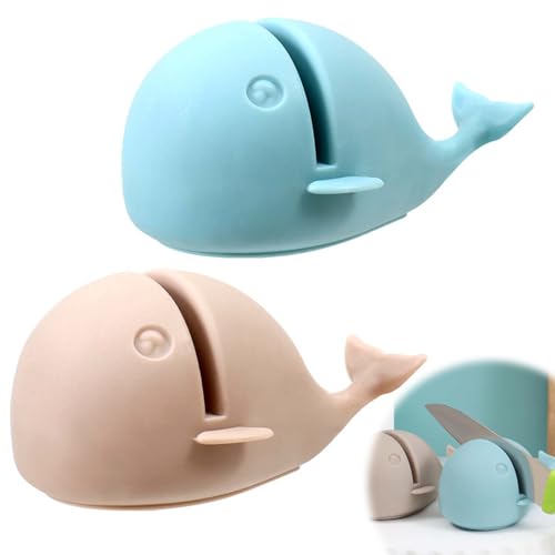 PAVIKEの手動ナイフ研ぎ器は可愛い鯨の形で、コンパクトで軽量。2個セットで、はさみやナイフの研ぎに便利。耐摩耗性・耐久性があり、滑り止め付きで安心して使用できます。