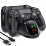 PS4コントローラー用充電スタンド。PS4 Pro/Slim対応、2台同時充電可能。安定した高速充電、過充電防止機能、LED指示ランプ付き。コンパクトで収納も便利。