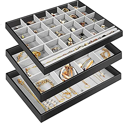 ProCase ジュエリートレイ 3個入 ジュエリー収納 化粧台・ドレッサー引き出し用 積み重ね可能 アクセサリケース ディスプレイ 仕切り付き ブラックの高価買取