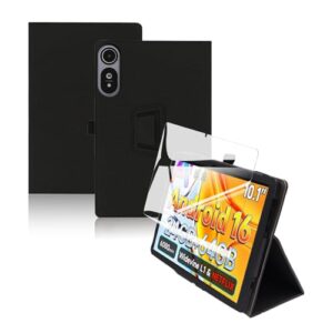 For BMAXPAD I10S/BMAX I10S ケース フィルム セット BMAX I10S 10インチ 保護ケース ガラスフィルム 軽量 カバー 角度調整 上質PU製 全方位カバー 衝撃耐性 【ブラック】+保護フィルム1枚
