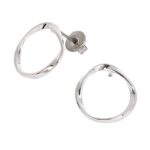 チタン製ポストの円形ねじりスタッドピアスです。細めの輪っかデザインが特徴で、シルバーの色合いが柔らかく、レディースにぴったりのアクセサリーです。アレルギーにも優しい素材です。