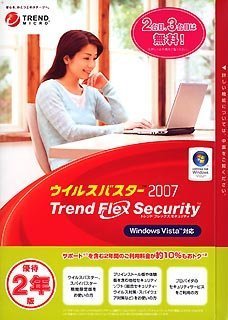 ウイルスバスター2007 トレンドフレックスセキュリティはVistaに対応したセキュリティソフトで、優待版として2年間のライセンスが提供されます。ウイルスやスパイウェアからPCを守ります。
