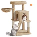 FEANDREAキャットタワーは、高さ96cmで大型猫や多頭飼いにも対応。耐荷重10kg、天然サイザル使用。広いハウスと転落防止設計で安定性抜群。マンチカンや子猫に最適です。