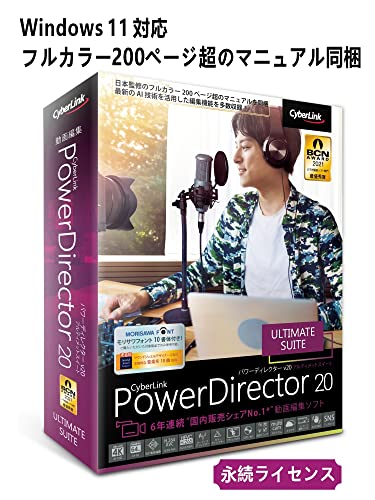 PowerDirector 20 Ultimate Suiteは、7年連続BCNアワード最優秀賞を受賞した動画編集ソフトで、永続ライセンスを提供します。高機能で使いやすく、プロフェッショナルな編集が可能です。