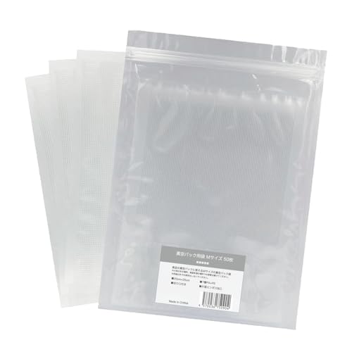 Susealの真空パック袋セットは、家庭用の真空パック機に対応。エンボス加工で脱気しやすく、安全素材を使用。鮮度保持に優れ、食品保存に最適な抗菌袋。Mサイズ50枚入り。