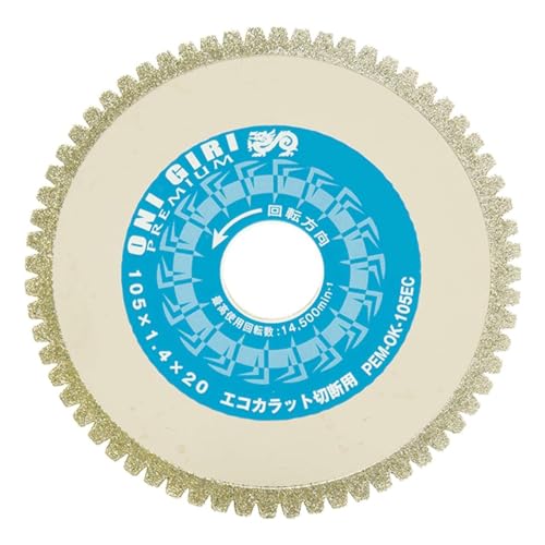 山真製鋸の電着ダイヤモンドカッター、鬼切りプレミアムPEM-OK-105ECは、エコカラット切断用に特化した105mmサイズの製品です。優れた切れ味と耐久性を兼ね備え、精密な仕上がりが可能です。