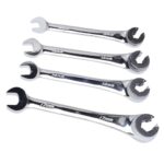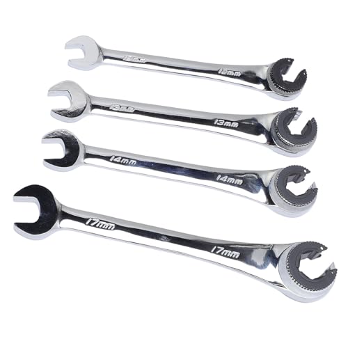 オープンエンド調整可能フレックスヘッドのCR-Vスチール製10-17mmメトリックコンビネーションラチェットチューブレンチセット。燃料ブレーキエアコンラインナット用4ピースのラチェットレンチセットです。