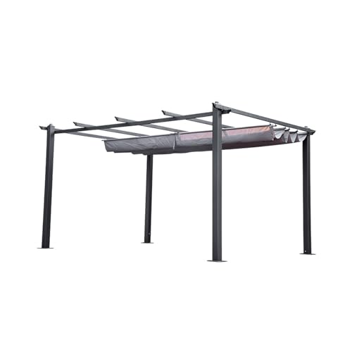 パーゴラ パーゴラ 組立キット ガゼボ 簡単設置 テラス屋根 diy キット パーゴラシェード ガゼボ パティオ アルミニウム パーゴラ ダブルサンシェードキャノピー付き 屋外 格納式 パーゴラ モダン グレープトレリス デッキ裏 (カーキ色の布, 3*3m)の製品情報